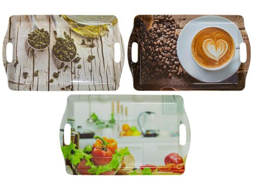 Praktický obdelníkový tác s průhmaty pro snadné přenášení. Podnos je vyrobený z nezávadného melaminu s mimořádnou tuhostí a vysokou kvalitou. Podnos je snadno čistitelný a udržovatelný díky svému hladkému povrchu. Není vhodný pro styk s potravinami. Dekor dle skladové dostupnosti. Rozměry 37 x 23 cm. EAN 5908239664633