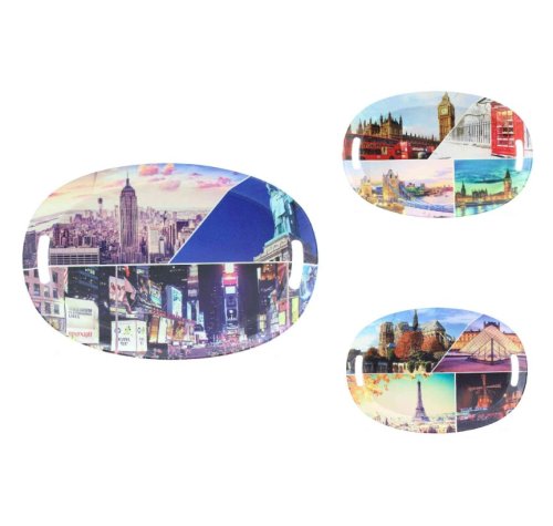 Podnos PH 46x34cm ovál s průhmaty CITY, mix dekorů