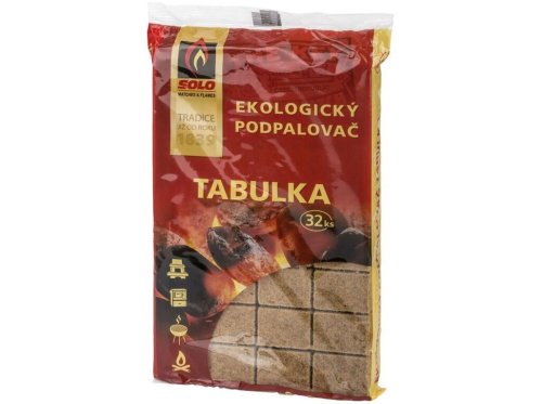 Podpalovač vyrobený z lisovaného dřevnitého vlákna namáčeného v kvalitním parafínu. Je vhodný k zapálení ohně na grilu, v krbu nebo kamnech. Průměrná délka hoření je 6 až 8 minut. Balení obsahuje tabulku s 32ks podpalovače. Český výrobce. EAN 8595025704986