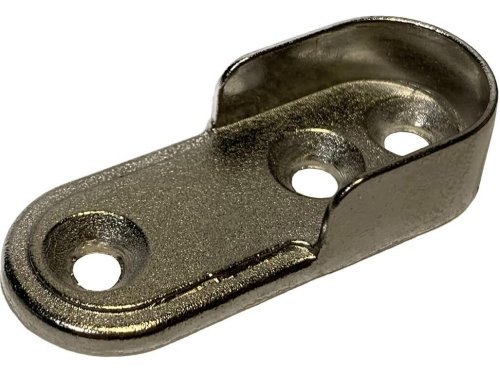 Kovová podpěrka oválné šatní tyče k přišroubování, dodávaná bez vrutů k uchycení.