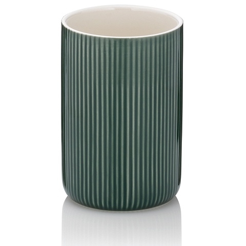 Barevný, veselý akcent do každé koupelny: kelímek na zubní kartáčky AVA v poutavé alpské zelené s bílým keramickým vnitřním povrchem. Mýdelnička má rozměry: výška 10,5 cm, 7,5 cm Keramická 7,5 cm, 10,5 cm v