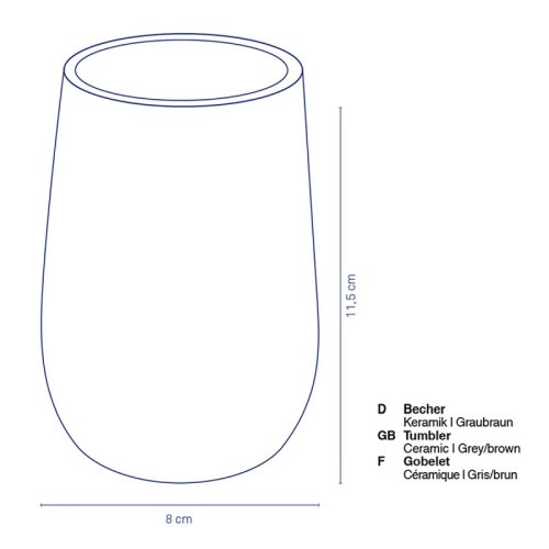 Speciální koupelnový pohoár ze série Dots. Vizuálně šedohnědý exemplář je něčím výjimečný. Takzvané tečky jsou vystouplé a jsou tedy cítit, když hrnek držíte v ruce. Rozměry: výška 11,5 cm, průměr 8,0 cm Keramický, lesklý, 8 cm, v. 11,5 cm