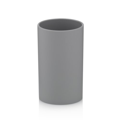 Jednoduché a elegantní koupelnové doplňky: Sklenička ŠEDÁ z šedého plastu. Povrch je protiskluzový. Lze použít jako kelímek na zubní kartáček i jako držák na zubní kartáčky. Hrnek má průměr 6,5 cm a výšku 11,5 cm. ABS plast.