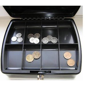 • praktická, lehká, uzamykatelná pokladna s pevným madlem pro snadné přenášení