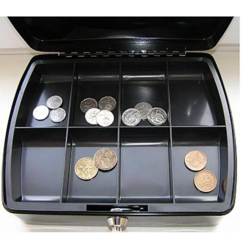 kovová přenosná pokladna plastový pořadač na mince a bankovky praktická, lehká, uzamykatelná pokladna s pevným madlem pro snadné přenášení