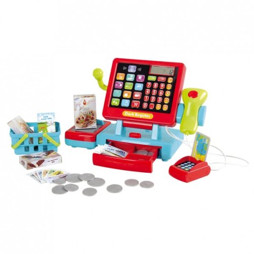 Děti si mohou zahrát na obchod s pokladnou, která reaguje na dotyk. Balení obsahuje mnoho doplňků, které do obchodu patří. Rozměr krabice: 35 x 22 x 15 cm Vhodné od 3 let