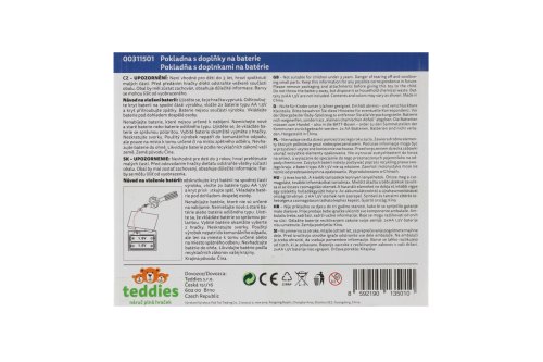 Dětská elektronická pokladna s doplňky pro každý správný obchod. Funkční kalkulačka s displejem, otevírací zásuvkou s penězi a světlem a zvukem u čtečky čárových kódů. Rozměr pokladny: 18 cm Rozměr krabice: 22 x 15 x 18 cm Na baterie - 2 ks baterií typu AA 1,5V - baterie nejsou součástí výrobku Vhodná pro děti od 3 let