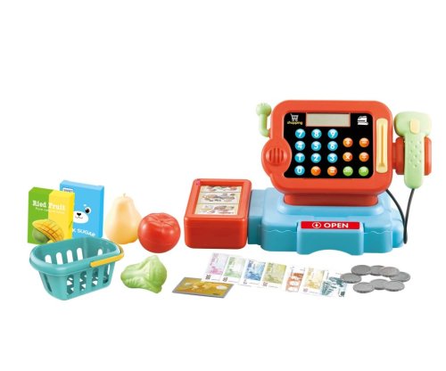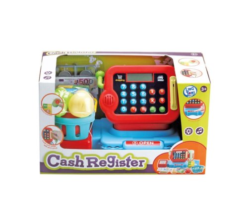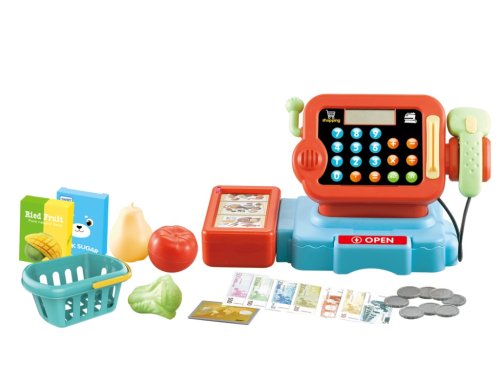 Tato pokladna je skvělým dárkem pro každého malého obchodníka! Obsahuje přihrádku na peníze, skener na produkty, čtečku kreditních karet se zvukovým efektem a LCD displej pro realistické zobrazování cen. Součástí je také pokladní pás pro ještě větší zábavu při hře na obchod.