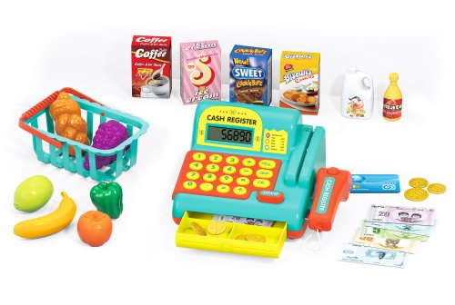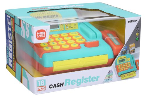 Pokladna s efekty. Velikost 20x16x11cm. Baterie 2xAA není součástí.