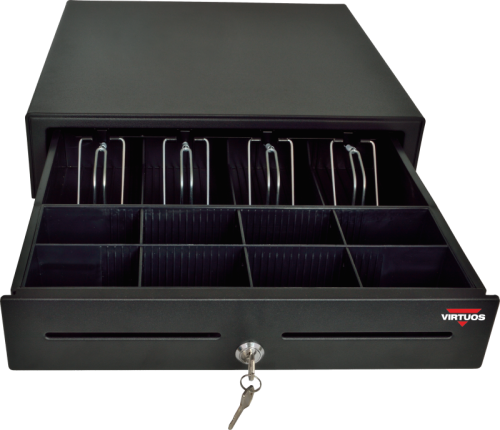 Základní parametry * Výměnný pořadač se 4 kovovými držáky bankovek * Vyjímatelný mincovník s 8 zásobníky mincí * Otvírání zásuvky: mechanicky klíčkem nebo elektronicky * Elektronická kontrola otevření …