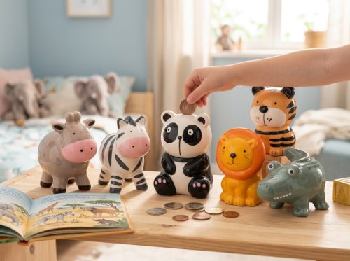 Veselá keramická pokladnička se zvířátky je praktickým i dekorativním doplňkem do dětského pokoje. Nabízena je v mixu různých zvířecích motivů a barev, které potěší malé i velké. Pokladnička je ideální pro ukládání drobných mincí a zároveň slouží jako milá dekorace. Skvělý tip na dárek, který děti motivuje ke spoření hravou formou. Zboží je dodáváno v mixu. Doručované zboží je vybíráno náhodně a nelze vybrat konkrétní provedení.