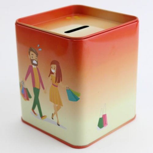 Plechové pokladničky s vtipným potiskem pro různé příležitosti. Odnímatelné víko s otvorem na mince. Rozměry: 8,5 x 10 cm.