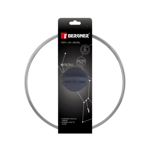• 28 cm víko. •Materiál: sklo. • Knoflík s technologií Soft Touch v šedé barvě s hadím efektem. •Otvor pro výstup páry. • Bez obsahu PFOA. •Péče: Pro prodloužení životnosti výrobku se doporučuje ruční mytí.28 cm víko patřící do kolekce Orion značky Bergner. Víko je vyrobeno ze skla, vysoce kvalitního a odolného materiálu, který vám umožní mít tento doplněk po mnoho let. Ideální pro doplnění vaší sady 20 cm hrnců a pánví. Víko obsahuje otvor pro únik páry během vaření. Navíc, protože je průhledný, umožní vám vidět vnitřek s naprostou lehkostí, usnadní vaření a šetří energii tím, že nemusíte zvedat víko, takže teplo zevnitř může unikat. Knoflík víka má technologii Soft Touch, která umožňuje mnohem pohodlnější a bezpečnější uchopení snížením nehod a popálení při manipulaci s kusem. Díl se snadno čistí. Pro prodloužení životnosti výrobku se doporučuje ruční mytí.