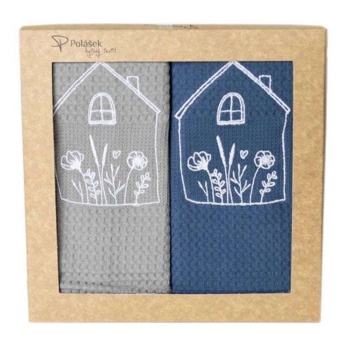 Polášek Dárková sada vaflových vyšívaných utěrek 2 ks set 2 Materiál: 100% Bavlna Rozměr: 50x70 cm Dárková sada 2 ks vyšívaných vaflových utěrek, rozměr utěrky 50x70 cm, utěrky jsou baleny v dárkové krabiččce. Vaflové utěrky jsou vyrobeny ze 100% bavlny, možnost praní na 60°C