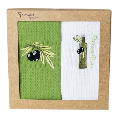 Polášek Dárková sada vaflových vyšívaných utěrek 2 ks set 9 Materiál: 100% Bavlna Rozměr: 50x70 cm Dárková sada 2 ks vyšívaných vaflových utěrek, rozměr utěrky 50x70 cm, utěrky jsou baleny v dárkové krabiččce. Vaflové utěrky jsou vyrobeny ze 100% bavlny, možnost praní na 60°C