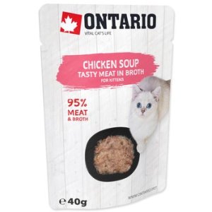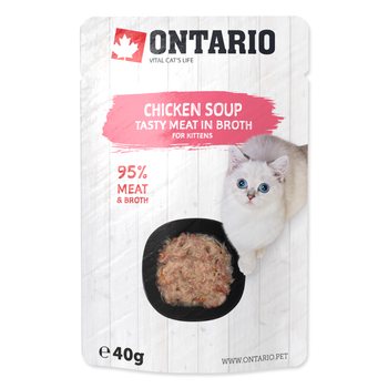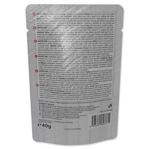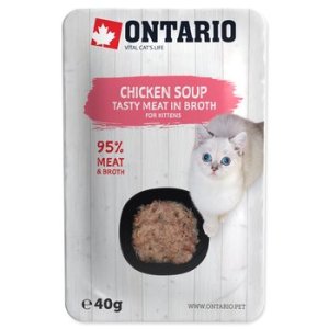 Doplňkové krmivo pro koťata – polévka s kousky kuřete, kterou můžete dopřát samostatně nebo jako doplněk k suchému krmivu.