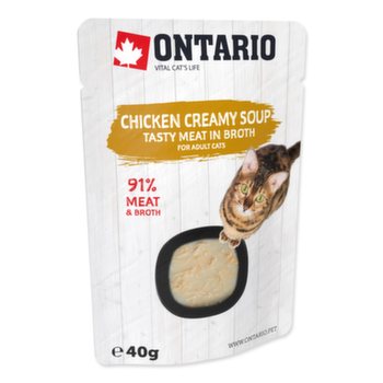 Doplňkové krmivo pro dospělé kočky – polévka s kousky kuřete a se sýrem, kterou můžete dopřát samostatně nebo jako doplněk k suchému krmivu.