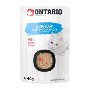 Doplňkové krmivo pro dospělé kočky – polévka s kousky tuňáka, kterou můžete dopřát samostatně nebo jako doplněk k suchému krmivu.