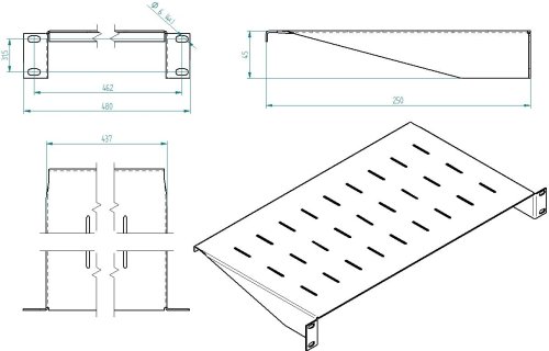 Pevná perforovaná police Masterlan FS-A1-250-B s předním 2bodovým uchycením je určená pro datové a telekomunikační účely všeho druhu, kdy slouží pro umístění do 19″ rozvaděčů bez příslušného rámu. Police zabere výšku 1U, její hloubka činí 250 mm a maximální nosnost plata odpovídá 25 kg, takže se hodí zejména pro miniaturní servery s kompaktními rozměry a nízkou hmotností.