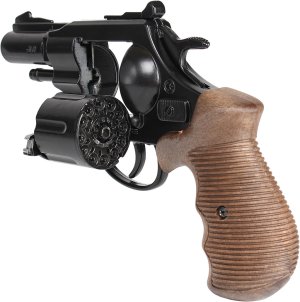 Policejní revolver z edice Gold colection – kovový, černý, na kapslíky – dvanáct ran. Velikost revolveru 21×9,5×4 cm. Vyrobeno ve Španělsku. Věk : 3+