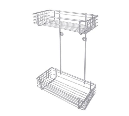 Kvalitní dvoupatrová koupelnová polička vyrobená z chromovaného drátu. Rozměry 30 x 17.5 x 33.5 cm. Montážní materiál součást balení. EAN 5901812356642