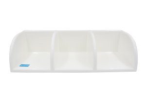 Plastová polička má 3 patra. Praktická rohová polička na zeď s policemi na drobné předměty je ideální do koupelny.