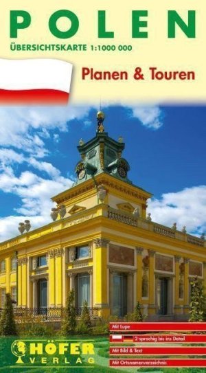 Mapa 1:1 000 000 - 2 jazyky do posledního detailu - Se samostatným rejstříkem názvů míst polsko-německý / německo-polský - mapa centra města Warszawa / Varšava - S obrázkem a textem - S lupou