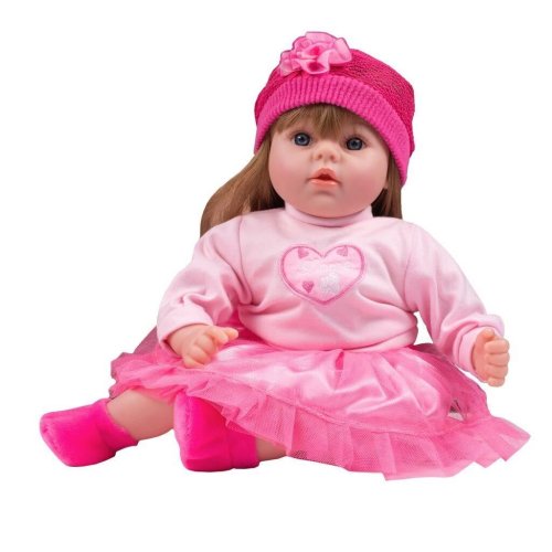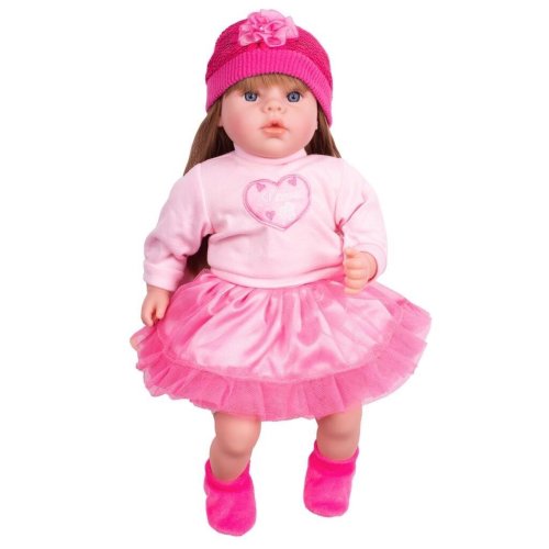 Krásná dětská panenka PlayTo. Skvělá hračka pro každou holčičku. Hlava, ruce a nohy jsou vyrobeny z gumy, tělíčko pak z měkkého materiálu, díky čemuž se může dítě k panence krásně přitulit. Panenka má celou sadu oblečení, včetně botiček a čepičky. Oblečení lze sundat a vyprat. Panenka má krásnou, usměvavou tvář, barevné oči a řasy jako u živého miminka. Délka panenky 46 cm. Panenka má polský modul a mluví tyto polské věty: mamusiu, tatusiu, tatusiu weź mnie na rączki, mamusiu kocham cię a jiné. Panenka zpívá tyto polské písničky: Jadą jadą misie, Kosi kosi łapci, Miała baba koguta, Ta Dorotka, My jesteśmy krasnoludki.