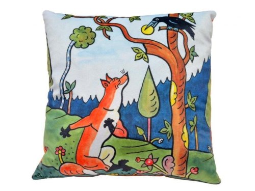 Měkoučký polštářek s motivem bajky O lišce, vráně a sýru podle předlohy Josefa Lady. Vhodný do postýlky, na cesty i jako dekorace do pokojíčku. Materiál mikrovelur, obrázek tisk, náplň duté vlákno. Zadní strana oranžová.Pro děti bez omezení věku.