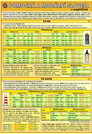 Přehled pomocných a modálních sloves v angličtině. Užití jednotlivých pomocných i modálních sloves včetně příkladů. Obsahuje tabulky časování pomocných sloves v přítomném, minulém a budoucím čase včetně stažených tvarů.