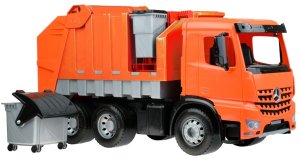 Plně multifunkční popelářské auto s odnímatelnou popelnicí a kontejnerem na kolečkách. Vyroben z kvalitního plastu. Baleno v okrasném kartónu. Velikost 72x36x24cm. Vyrobeno v ČR.