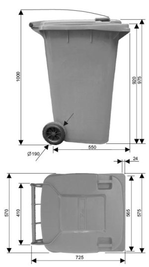 Vhodné pro sběr komunálního a průmyslového odpadu. Materiál z něhož jsou vyrobeny je recyklovatelný. Nevhodné pro ukládání horkého popela. Barva žlutá.
