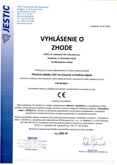 • Určena pro běžný sběr komunálního a průmyslového odpadu