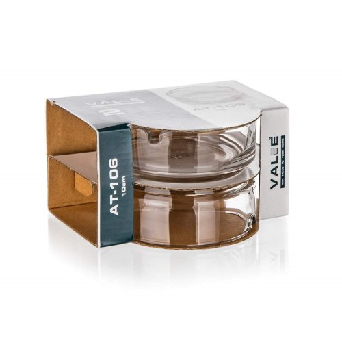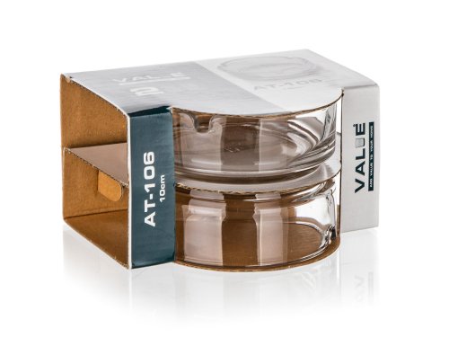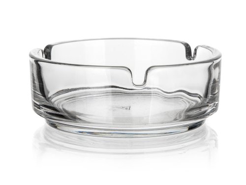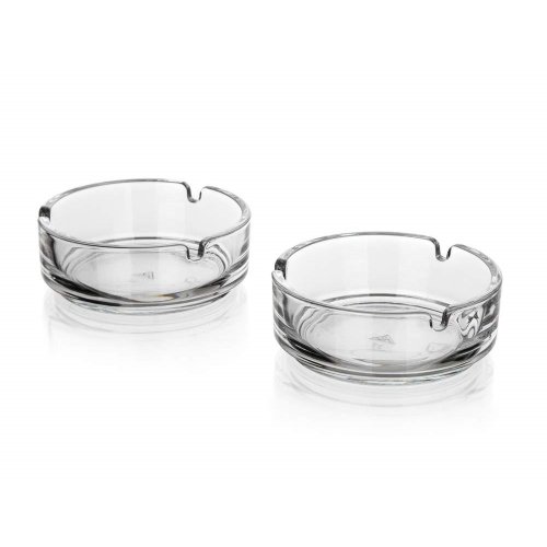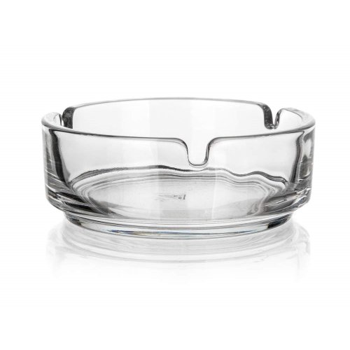 Balení 2 kulatých popelníků z čirého skla. Popelník má tři výřezy na cigarety a dno s hladkým profilem. Popelník je vhodný pro domácí použití i do gastro provozů, barů a kaváren.