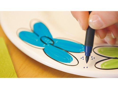 [ Popisovače Edding Porzellan 4200][ Popisovače Edding Porzellan 4200], * neutrální vůně, * rychle zasychá a nerozmazává se, * flexibilní štětec vhodný pro větší plochy i drobné detaily, * vhodné pro glazovanou keramiku a žáruvzdorné sklo, * po vypálení na 160 °C po dobu 25 minut možno mýt v myčce., [vyrobeno v Evropě], JAK POPISOVAČE POUŽÍVAT:, * povrch porcelánu je nutné pečlivě umýt od prachu a mastnoty (např. v myčce, běžným prostředkem na nádobí či denaturovaným lihem), * při nanášení barvy na porcelán dejte pozor, aby na povrchu nezůstaly vaše otisky prstů (např. šálek držte na okraji či zevnitř, abyste se nedotýkali ploch, na které budete malovat), * pokud uděláte chybu, můžete inkoust setřít vlhkým hadříkem a barvu nanést znovu (nestírejte prstem), * po nanesení nechte barvu 15 minut zcela zaschnout, * po zaschnutí vložte do trouby vyhřáté na 160 °C a zapékejte 25 minut, * nechte v troubě zchladnout, * u nádobí barvu nanášejte pouze na ty části, které nebudou v kontaktu s ústy a potravinami, a nebudou tak namáhané – doporučujeme malovat na vnější plochy, * nádobí umývejte opatrně a šetrně, aby nedošlo k setření barvy, vyhněte se častému mytí, drhnutí, leštění či neopatrnému ukládání do myčky, * fixy lze použít na světlý porcelán, glazovanou keramiku a varné sklo, * ukládejte fixy ve vodorovné poloze, [1 - 1,4 mm], DOPORUČENÍ VÝROBCE: DEKORACE UMÍSTĚTE SPÍŠ NA MÍSTA, KTERÝCH SE PŘÍMO NEDOTÝKAJÍ PŘÍBORY (V PŘÍPADĚ TALÍŘŮ) A RTY (V PŘÍPADĚ HRNKŮ). TYTO ČÁSTI JSOU VÍCE NAMÁHANÉ A, ZDOBENÍ BY TAK MOHLO NAMÁHÁNÍM PO ČASE ZMIZET., [ Popisovače Edding Porzellan 4200]