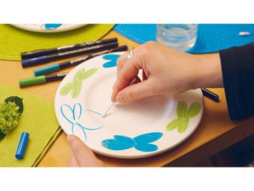 [ Popisovače Edding Porzellan 4200][ Popisovače Edding Porzellan 4200], * neutrální vůně, * rychle zasychá a nerozmazává se, * flexibilní štětec vhodný pro větší plochy i drobné detaily, * vhodné pro glazovanou keramiku a žáruvzdorné sklo, * po vypálení na 160 °C po dobu 25 minut možno mýt v myčce, * V NABÍDCE I SADY 6 BAREV, [vyrobeno v Evropě], Jak popisovače používat:, * povrch porcelánu je nutné pečlivě umýt od prachu a mastnoty (např. v myčce, běžným prostředkem na nádobí či denaturovaným lihem), * při nanášení barvy na porcelán dejte pozor, aby na povrchu nezůstaly vaše otisky prstů (např. šálek držte na okraji či zevnitř, abyste se nedotýkali ploch, na které budete malovat), * pokud uděláte chybu, můžete inkoust setřít vlhkým hadříkem a barvu nanést znovu (nestírejte prstem), * po nanesení nechte barvu 15 minut zcela zaschnout, * po zaschnutí vložte do trouby vyhřáté na 160 °C a zapékejte 25 minut, * nechte v troubě zchladnout, * u nádobí barvu nanášejte pouze na ty části, které nebudou v kontaktu s ústy a potravinami, a nebudou tak namáhané – doporučujeme malovat na vnější plochy, * nádobí umývejte opatrně a šetrně, aby nedošlo k setření barvy, vyhněte se častému mytí, drhnutí, leštění či neopatrnému ukládání do myčky, * fixy lze použít na světlý porcelán, glazovanou keramiku a varné sklo, * ukládejte fixy ve vodorovné poloze, , [1 - 1,4 mm], , DOPORUČENÍ VÝROBCE: DEKORACE UMÍSTĚTE SPÍŠ NA MÍSTA, KTERÝCH SE PŘÍMO NEDOTÝKAJÍ PŘÍBORY (V PŘÍPADĚ TALÍŘŮ) A RTY (V PŘÍPADĚ HRNKŮ). TYTO ČÁSTI JSOU VÍCE NAMÁHANÉ A, ZDOBENÍ BY TAK MOHLO NAMÁHÁNÍM PO ČASE ZMIZET., [ Popisovače Edding Porzellan 4200]