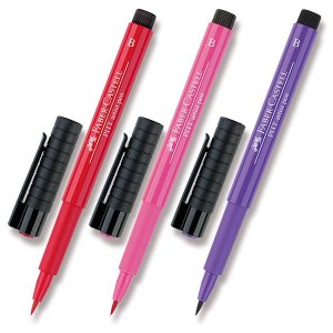 ŠÍŘE STOPY B., * vysoká stálost barev, * PH neutrální inkoust bez obsahu kyselin, bez zápachu, * inkoust je odolný proti působení slunečního záření, * po zaschnutí voděodolný, nerozmazávající se na papíře, * kvalitní štětečkový hrot zaručuje maximální pružnost a spolehlivý průtok inkoustu, * pigmenty nejvyšší jakosti,  , TYPY HROTŮ POPISOVAČŮ FABER-CASTELL PITT ARTIST PEN, TIP: K uměleckým psacím potřebám můžete potřebovat i SPECIÁLNÍ PAPÍR, na kterém se inkoust popisovačů nerozpíjí.