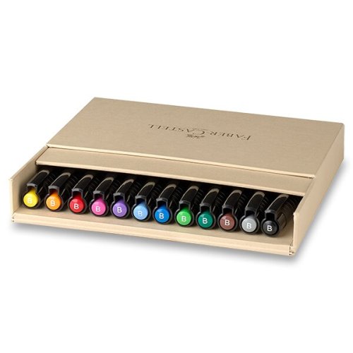 Moderní umělecký popisovač Faber-Castell Pitt Artist Pen Brush pro tušové skicování, kreslení a malbu se štětečkovým hrotem, 12 ks.