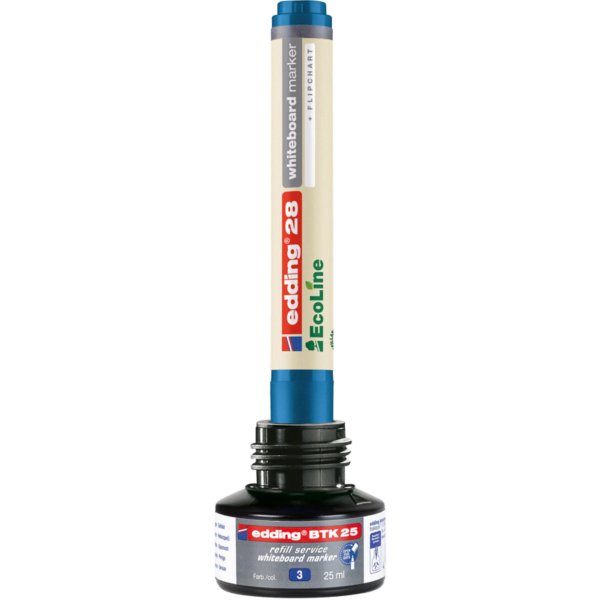 Zelený popisovač na bílé tabule z ekologické řady edding Ecoline Tělo popisovače je nejméně z 90 % vyrobené z recyklovaných materiálů Vyměnitelný hrot a možnost znovu naplnění vypsaného popisovače pomáhá …
