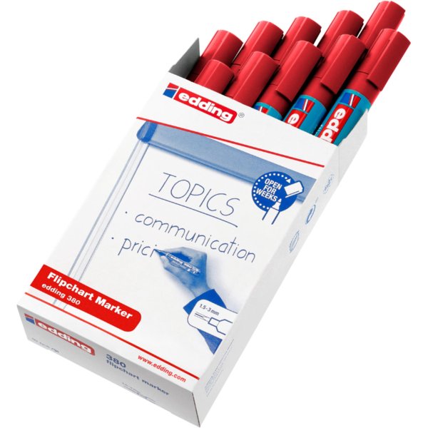 Popisovače na flipcharty Vydrží bez víčka až 6 týdnů Kulatý hrot Šíře stopy: 1,5 - 3,0 mm Množství v originálním balení: 10 ks