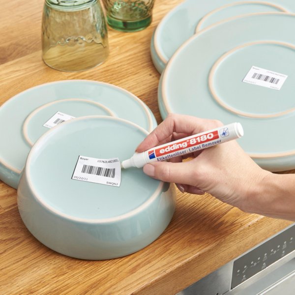 • Popisovač slouží ke snadnému odstranění většiny papírových štítků, etiket a zbytků lepidla např. od dálničních známek, na podrážkách bot, na skle a porcelánu
