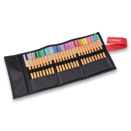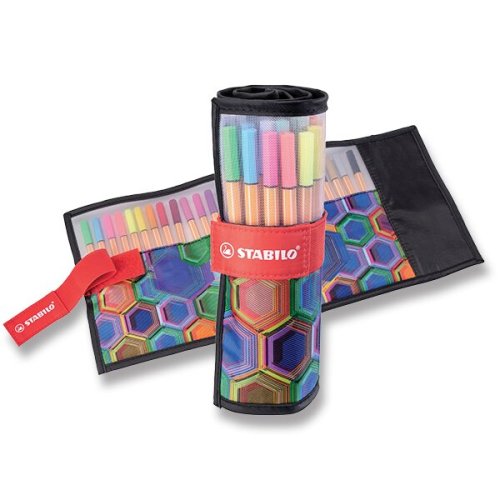 Textilní rolovací pouzdro se samostatným poutkem pro všech 25 linerůUzavření pouzdra pomocí pásku se suchým zipemNezaměnitelný šestihranný design s bílými pruhy.K dostání ve 25 barvách.V kovovém pouzdře chráněný hrot zaručuje dlouhou životnost.Vhodný pro rýsování a práci se šablonami.Inkoust na vodní bázi.Vydrží dlouho bez uzávěru.Prodyšný uzávěr.