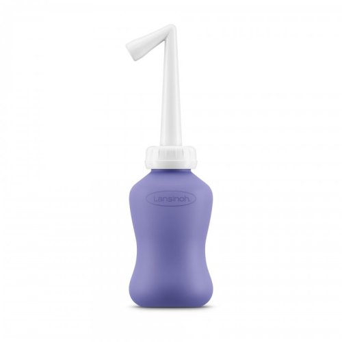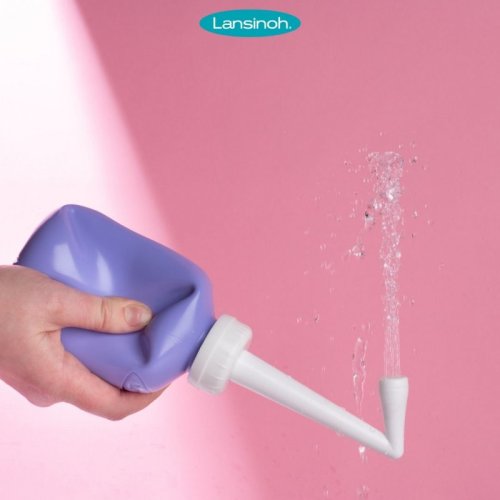 Lansinoh Poporodní sprška na hráz poskytuje jemný proud vody na vyčištění a zklidnění citlivé hráze. Po porodu bývá oblast perinea (hráze) často podrážděná a jít na toaletu může být zpočátku velmi bolestivé. Jemný proud vody pomáhá také ředit moč při močení a předcházet tak případnému pocitu pálení na podrážděné pokožce. Obrácená stříkací hlava umožňuje snadné použití dnem vzhůru. Vyčistí i těžko dostupná místa.