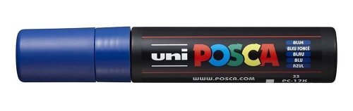 Nepostradatelný popisovač s mimořádně širokým hrotem je největším členem Posca určené pro odborníky. Posca PC-17K je díky velikosti hrotu oblíbená profesionály a umělci pro tvoření ve velkém měřítku. Tl. linky: 15 mm extra široký, hrot: akryl/ rovný, tělo: plast (PP), škála barev: 10 vč. metalických. Obsahuje bezkonkurenční inkoust, jehož složení se od svého vytvoření nezměnilo, je mimořádně bohatý na pigmenty a je extrémně odolný vůči atmosférickým podmínkám a plynutí času. Jeho matné barvy mají velkou hloubku - umělci je milují pro svá díla a fandové jsou ohromeni „magickým“ efektem Posca. Obsahuje jedinečný ventilový mechanismus, který zaručuje perfektní utěsnění a šetří barvu v průběhu času. Stejný mechanismus se používá k naplnění popisovačů Posca pro použití a k opětovnému nasycení špičky tak často, jak je to nutné během tvoření. Barva je velmi bohatá na pigmenty, čímž vykazuje výsledky vynikající hustoty. Jeho jedinečné složení na vodní bázi poskytuje jasné, matné, neprůhledné barvy, které opravdu vydrží. Je bez zápachu. Barvy jsou vrstvitelné, mísitelné, vodou rozpustné, odolné vůči povětrnostním vlivům a nabízejí neomezené kreativní možnosti. Vyrobeno v Japonsku.