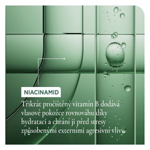 Sérum, které podporuje rovnováhu vlasové pokožky a posiluje vlasy od kořínků až po konečky. Neutralizuje volné radikály způsobující stres pokožky hlavy, pomáhá redukovat padání vlasů v důsledku mechanického zatížení a přináší okamžitý objemnější vzhled. Obohacené o mikrodávky koncentrátu s rozmarýnovým olejem a třikrát pročištěným niacinamidem.