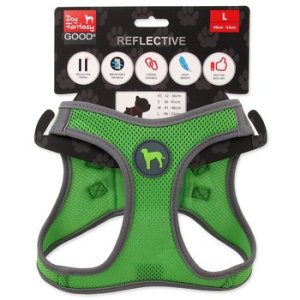 • Po obvodu celého postroje jsou všité reflexní prvky pro bezpečný pohyb zvířete.