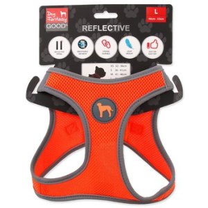 • Po obvodu celého postroje jsou všité reflexní prvky pro bezpečný pohyb zvířete.