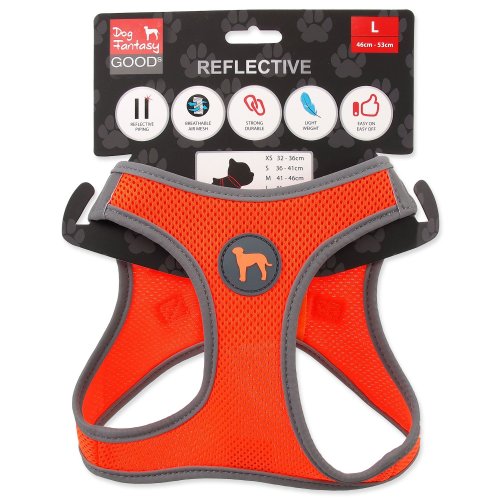 Postroj pro štěňata s nastavitelným obvodem hrudníku v horní části.