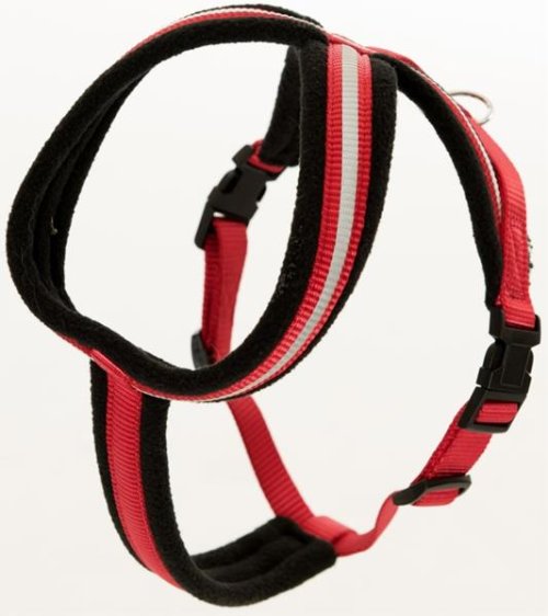 Reflexní nylonový postroj na malého psa v červeno/černé barvě. Postroj je vyroben v kombinaci velmi praktického nylonu a měkké fleecové podšívky, která zajišťuje komfortní a zároveň velmi pohodlné nošení. Nastavitelná velikost postroje kolem hrudníku 48-55 cm. Při zvolení správné velikosti, postroj nijak psa neomezuje v pohybu a neodírá srst. Tato velikost postroje je vhodná pro psa o velikosti, jako je např. jack russell teriér nebo shi-tzu. Velmi jednoduché nasazení na psa. Zapínání na plastové přezky. Pro ještě větší bezpečnost psa je postroj opatřen reflexními proužky. Rozměry: 48-55 cm