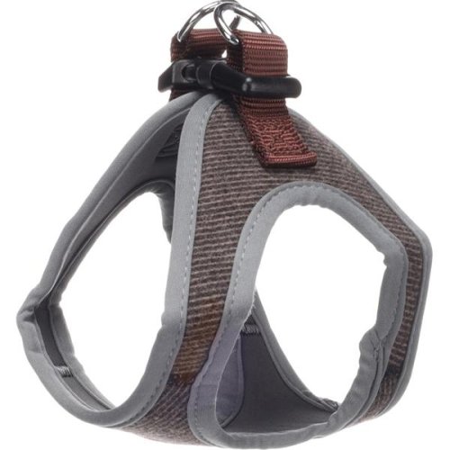 Hrudní postroj z odolného nylonu je opatřen plastovou přezkou na zapínání a dvěma chromovanými D-kroužky k připnutí vodítka. Pro větší pohodlí psa jsou okraje postroje obšité pevným lemem. Velikost: XS Rozměry (cca): A = 30 cm, B = 30 cm (viz obrázek) Materiál: nylon Barva: tmavě hnědá